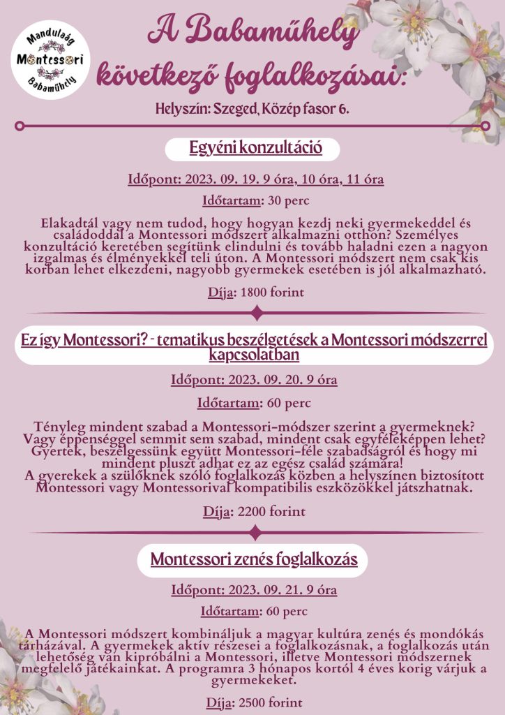 Heti programok a Babaműhelyben: 2023.09.19-2023.09.21.