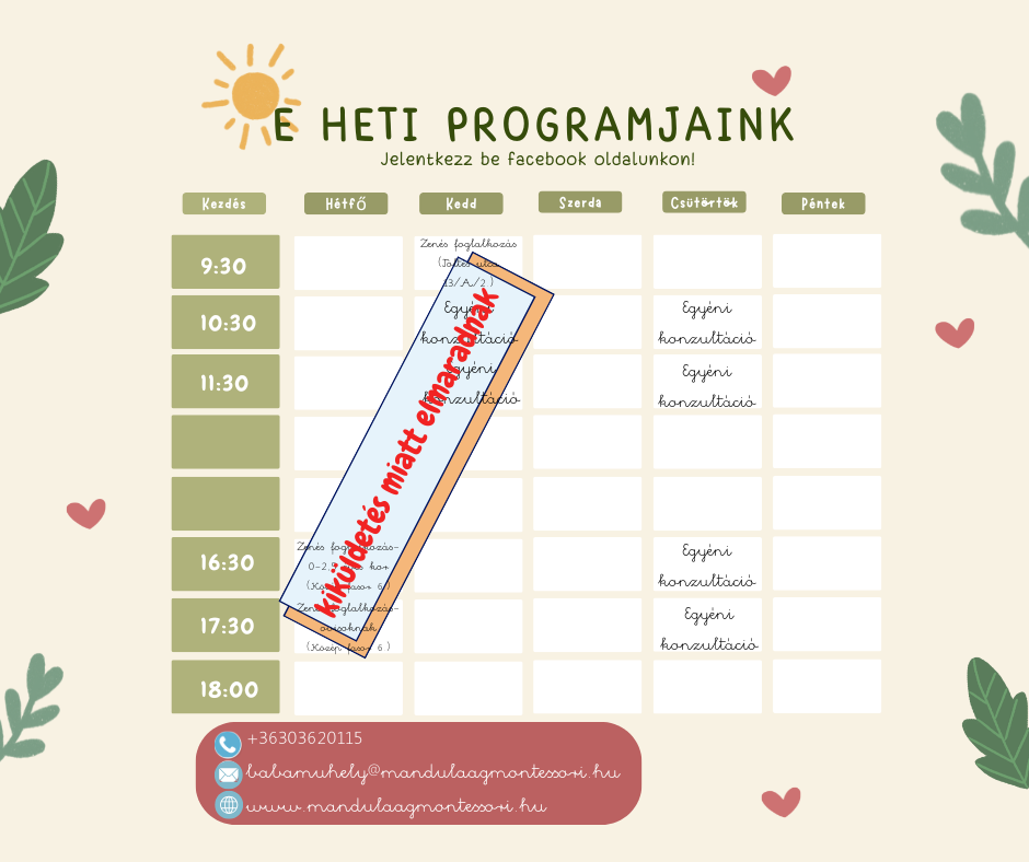 A következő hét nagyon rövid lesz a Babaműhelyben. Egyéni konzultációra (személyes vagy online) foglalhattok időpontot fb üzenetben vagy telefonon. Segíthet az egyéni konzultáció, ha: 🔸még csak ismerkedsz a Montessori módszerrel és nem tudod, hogy hol kezdjed 🔸már elkezdted, de elakadtál és tanácsra lenne szükséged 🔸nehézségeid vannak a dackorszakkal és szeretnéd megtudni, hogy Montessori módszer szerint hogyan segíthetnél magadnak és a gyermekednek is 🔸szeretnéd a Montessori módszert alkalmazva segíteni gyermeked az iskolaérettség felé vezető úton 🔸gyermekednek nehézséget okoz általános iskola alsó tagozatán a matematika, írás és olvasás, s szeretnéd otthon, Montessori eszközökkel támogatni a fejlődését Várlak Benneteket szeretettel 🙂!