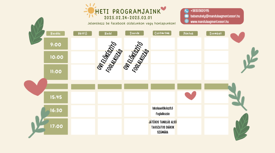 Hangszálakat érintő betegség miatt a zenés foglalkozások elmaradnak a héten. Ovi és iskola előkészítő foglalkozásaink, illetve a kisiskolások játékos tanulás foglalkozását viszont megtartjuk. Bejelentkezni a Baba- és Iskolaműhely szolgáltatási almenüpontjain keresztül tudtok.